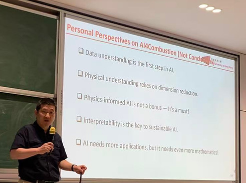During the seminar, Professor Zhang shared insights on how machine learning is adopted for the understanding complex combustion dynamics. The talk highlighted interdisciplinary approaches bridging AI, fluid dynamics, and combustion, drawing strong interest from faculty and graduate students in attendance.
